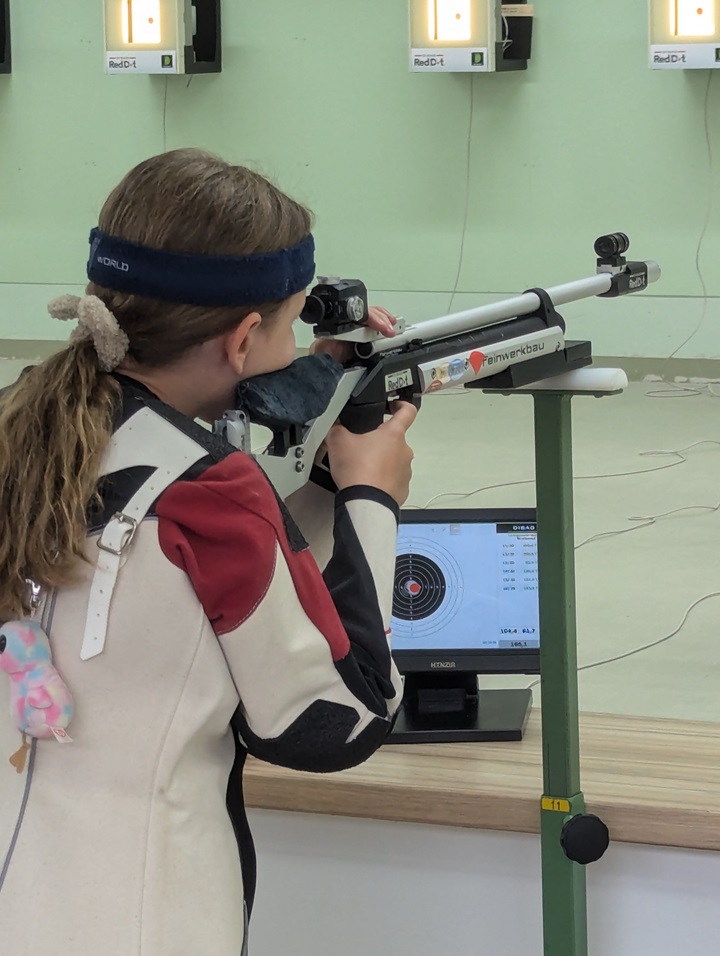 Bei den Kreismeisterschaften errang ESG mit dem Lichtgewehr den ersten Platz. Olivia Mau, eine Altersklasse höher,